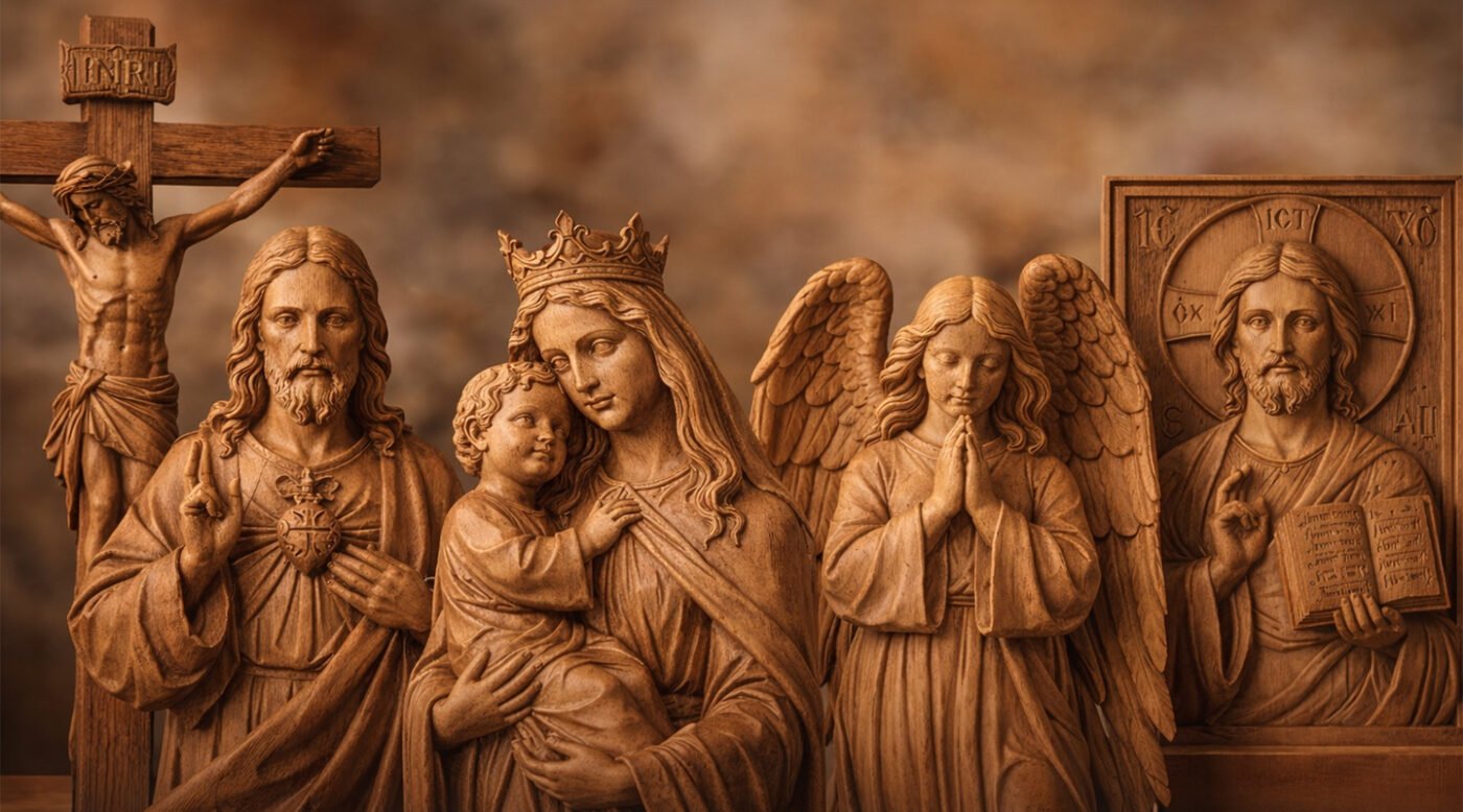 A Christian wood carving carries memory, prayer, and blessing. The grain of the wood, the marks of the chisel, and each expression all tell a story of faith.