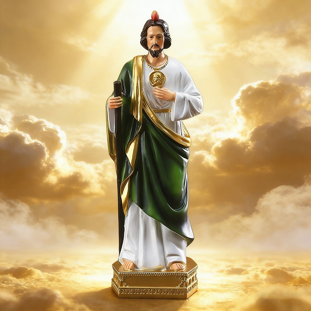 Each figurine is uniquely finished by hand. The rich greens, gold highlights, and expressive facial details reflect the beauty of classic Catholic art. The statue serves as a reminder of Jesus’ mercy, guidance, and unconditional love.