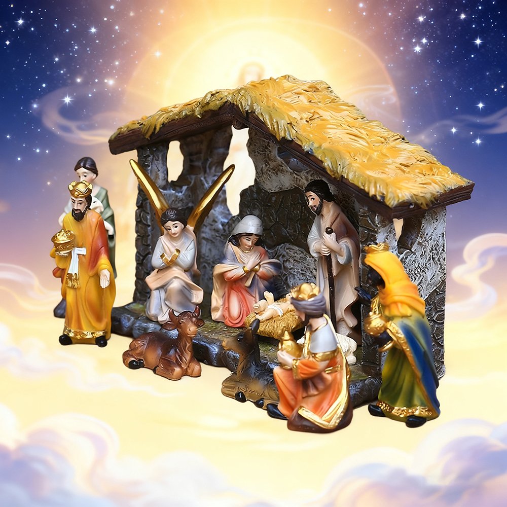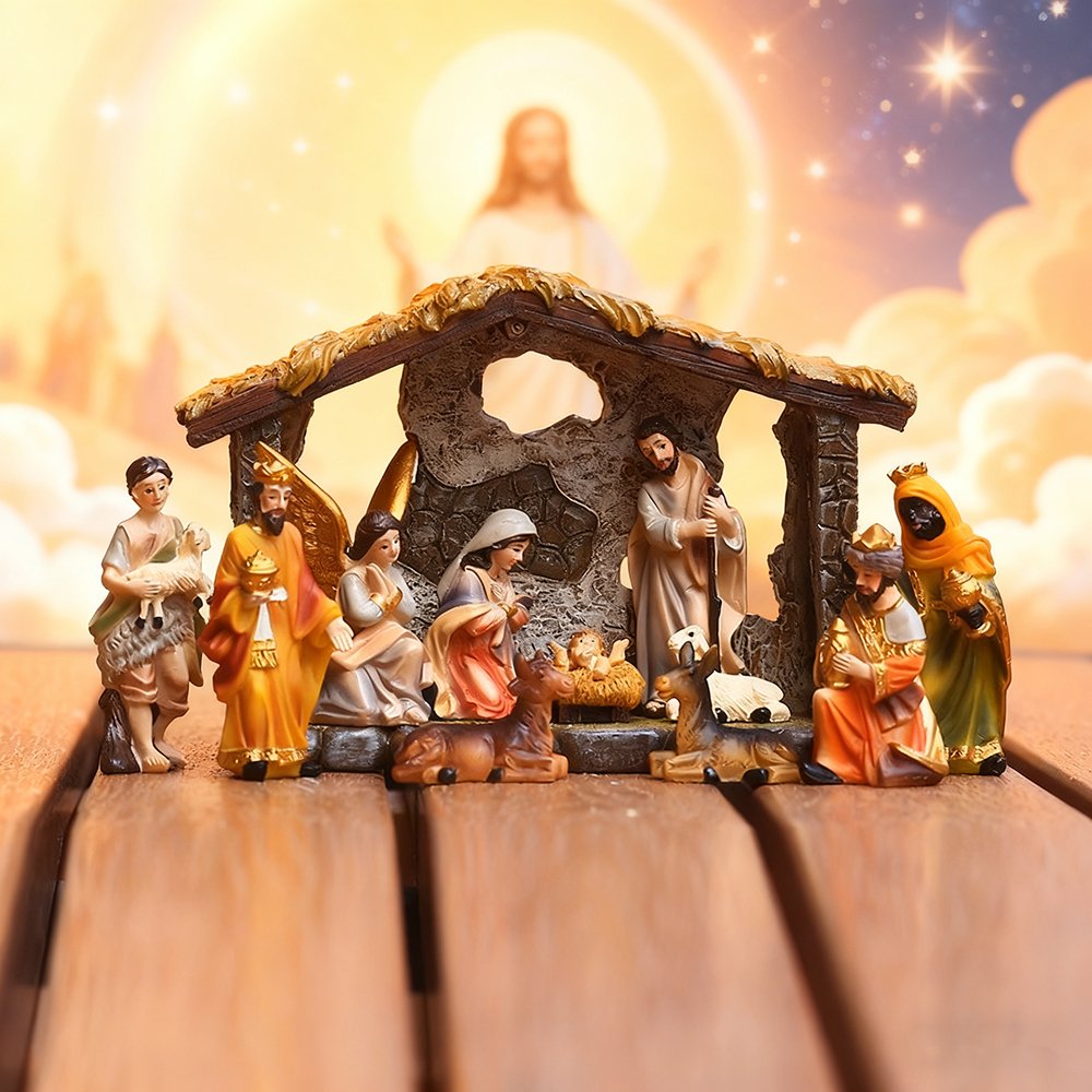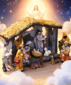The 8 inch resin nativity set is small enough for compact spaces but detailed enough to become the centerpiece of your Christmas display. Families often place it at the heart of their seasonal decorations to remind children and guests of the true meaning of Christmas.