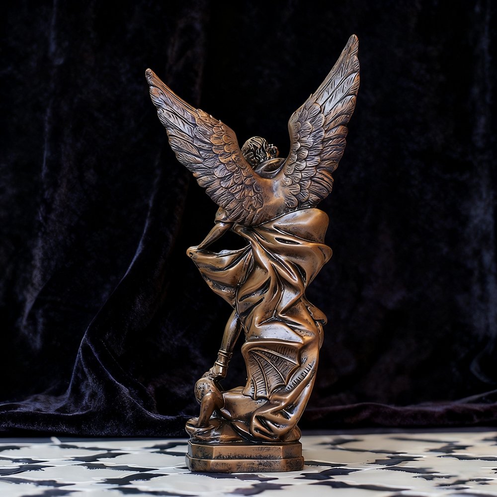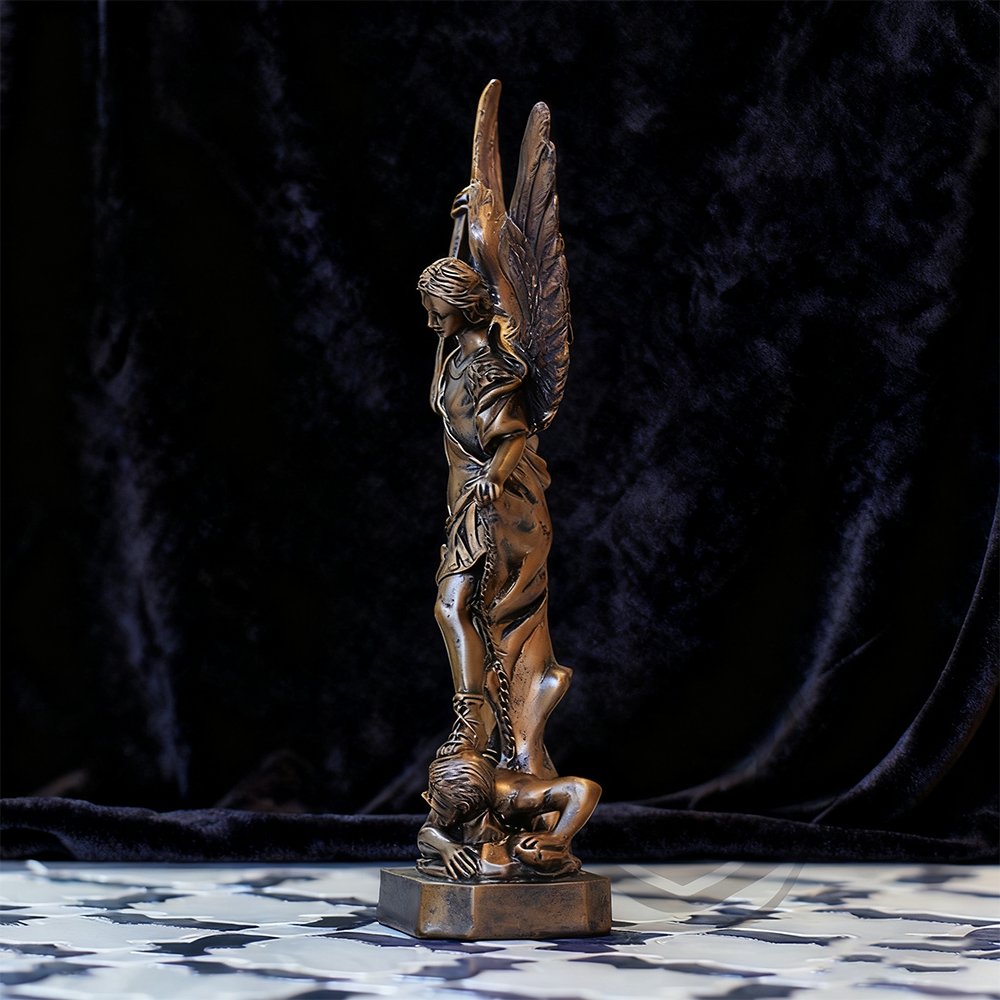 Many believers place a bronze St Michael statue near doors, on shelves or on home altars as a sign of spiritual protection and courage. The strong, warrior-like posture also makes it a fitting gift for people facing personal challenges or important life transitions.