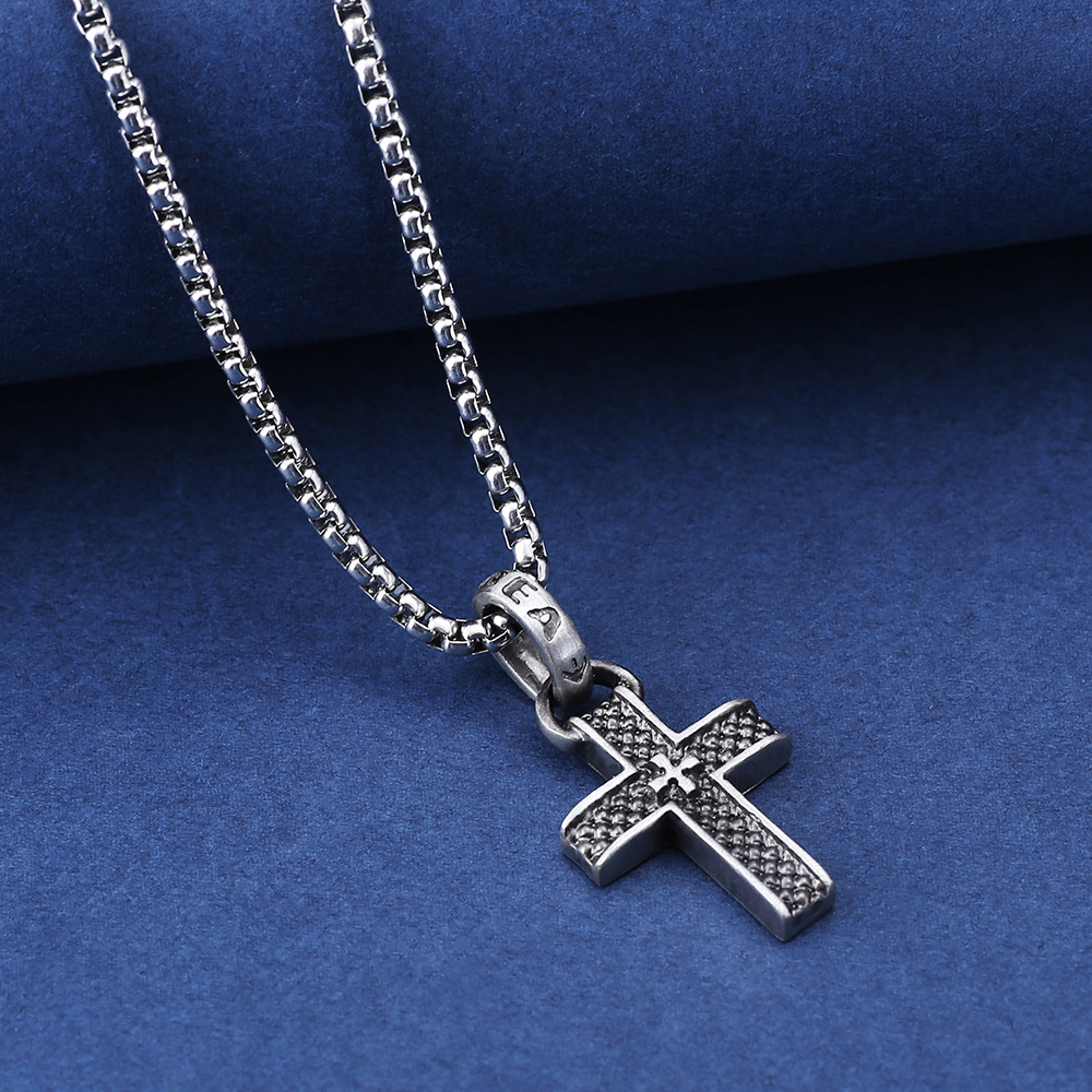 The textured titanium steel cross pendant is crafted for those who appreciate compact Christian jewelry with a rugged vintage style. Made from premium titanium steel, this pendant offers excellent durability, anti-tarnish performance, and long-lasting color retention. Its deep-engraved texture pattern brings a unique, handcrafted appearance that stands out from standard smooth-surface pendants.